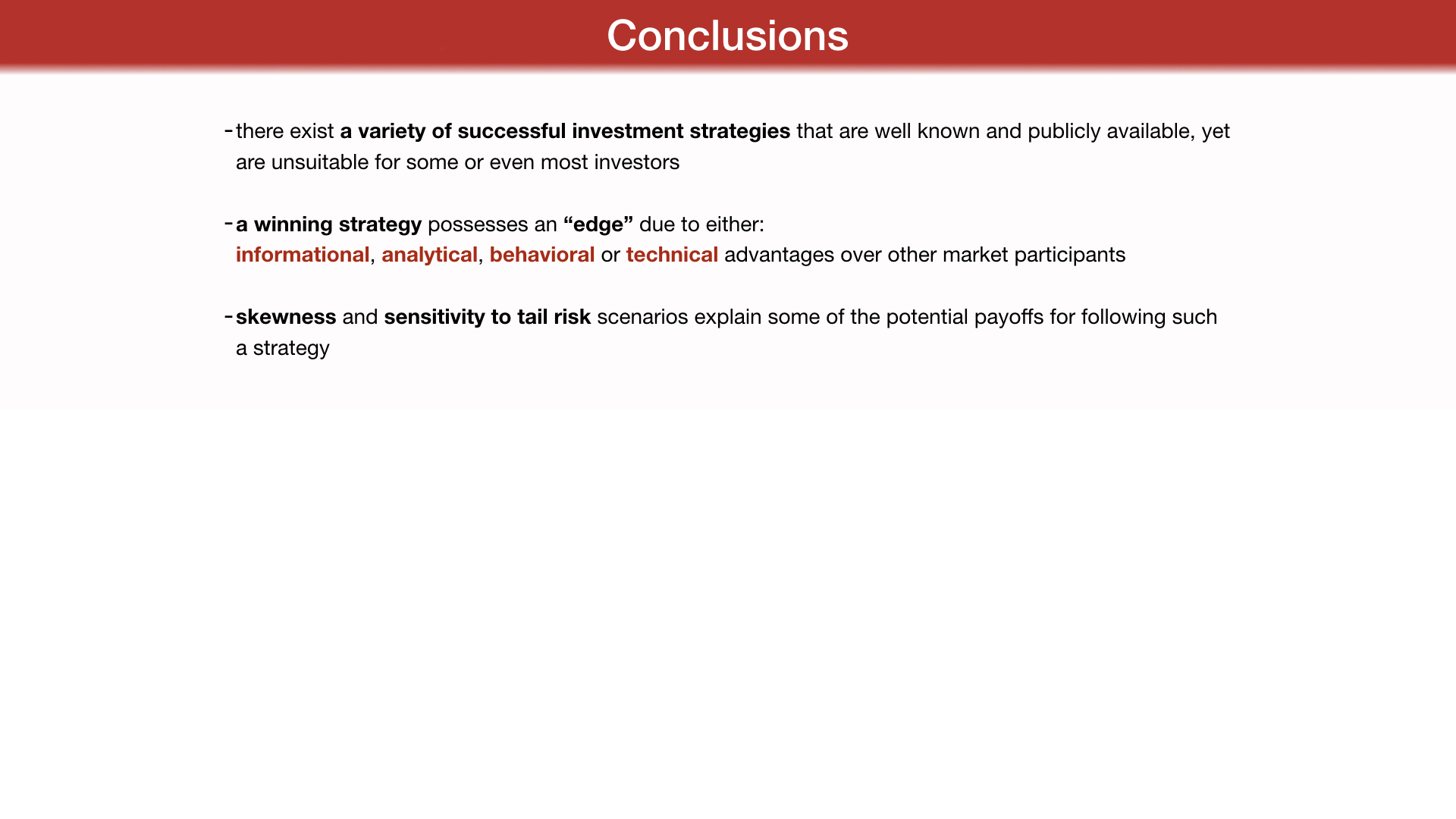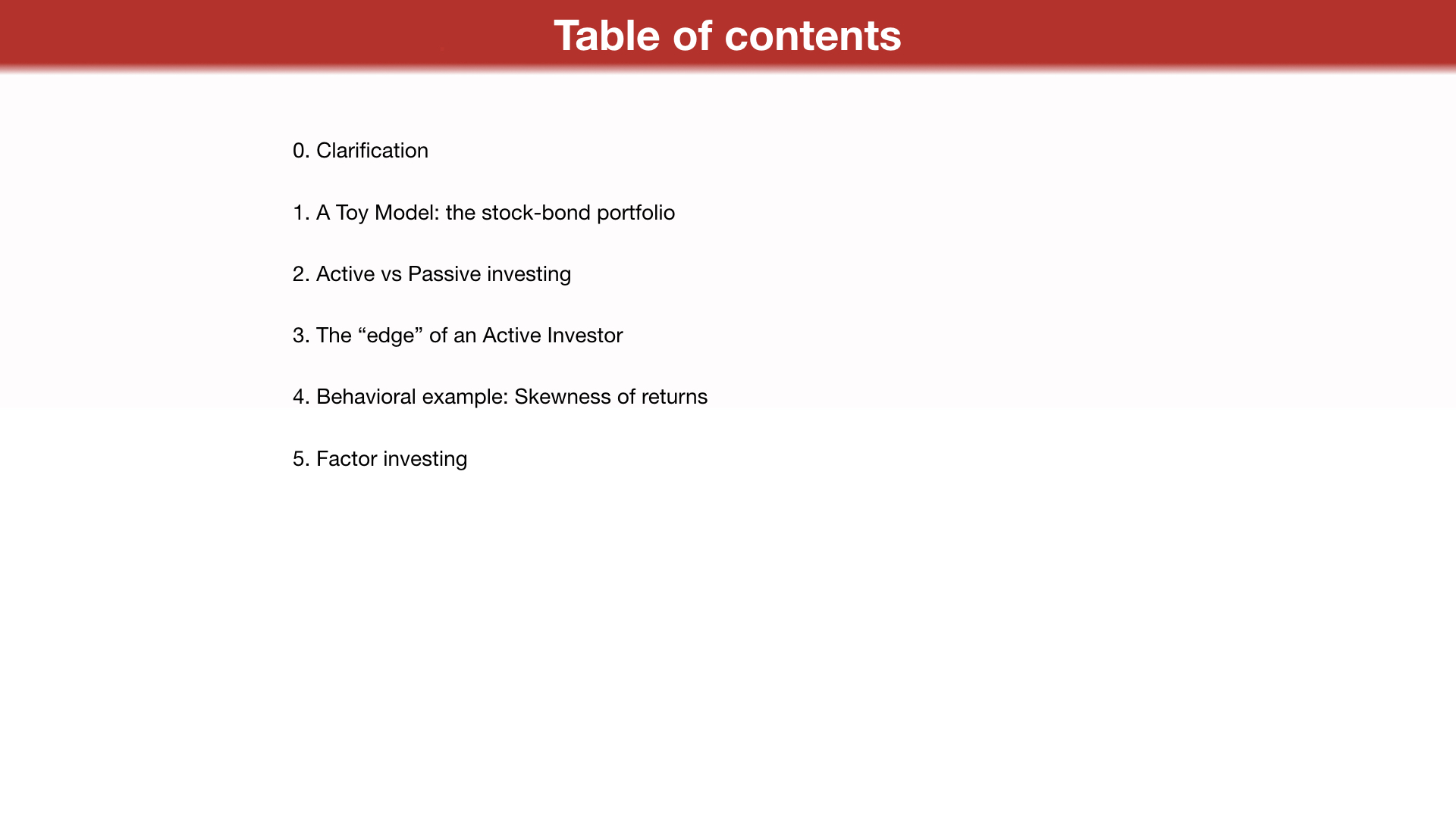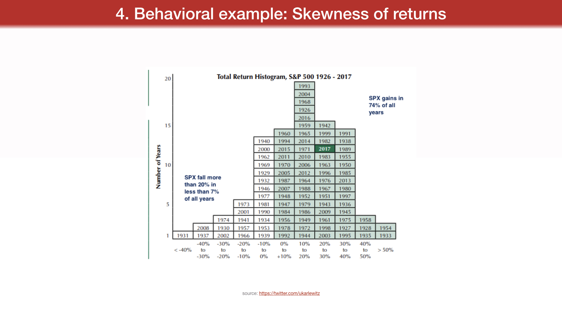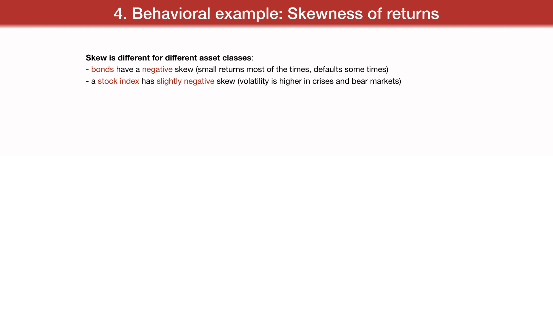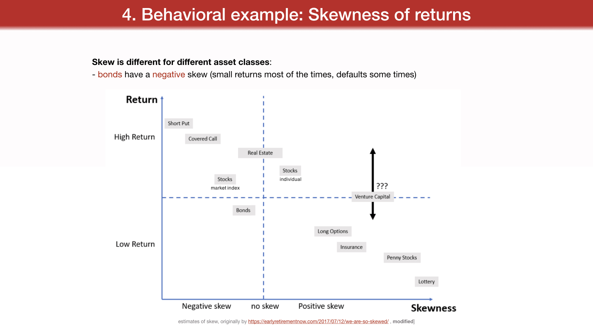 4. Behavioral example: Skewness of returns 5. Factor investing