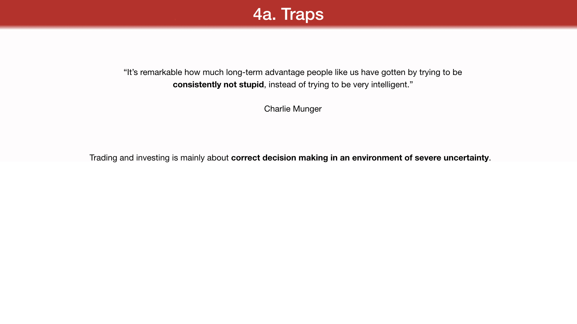 Trading and investing is mainly about correct decision making in an environment of severe uncertainty.