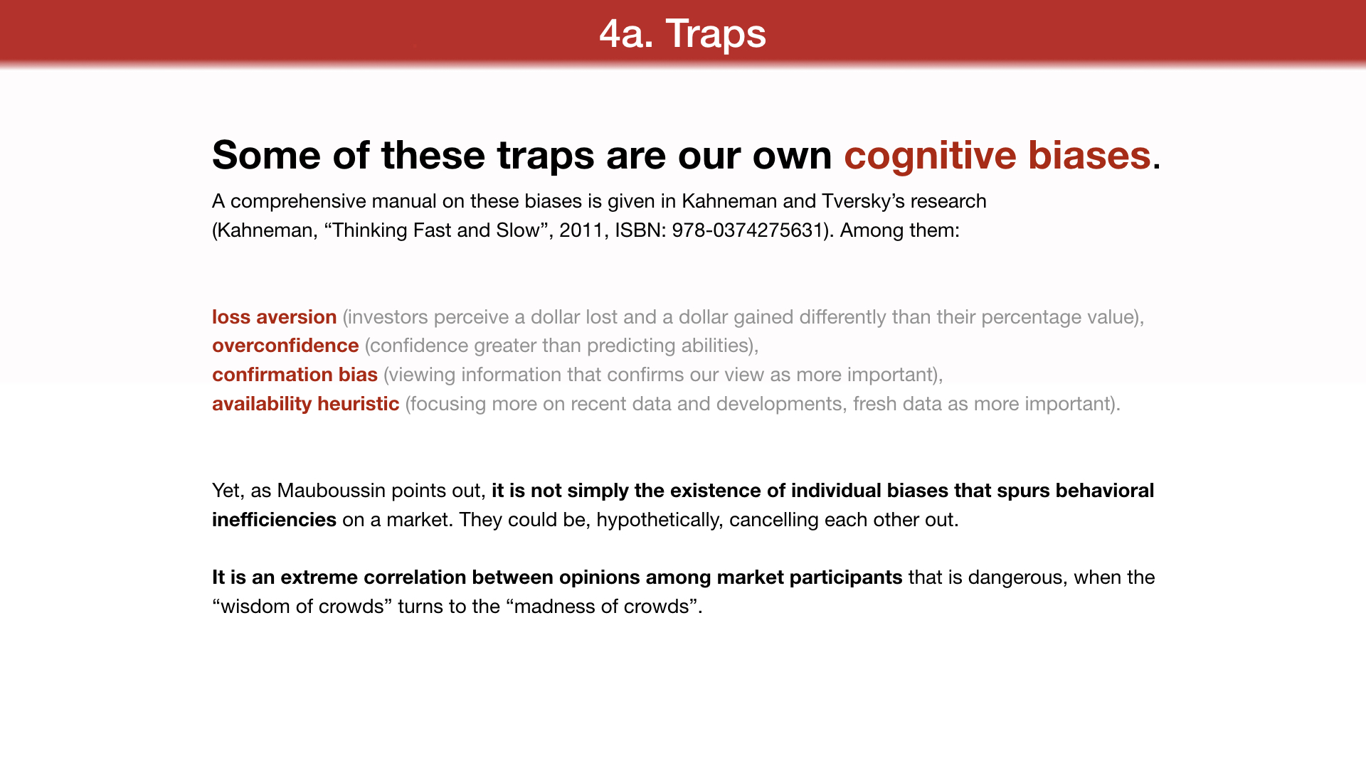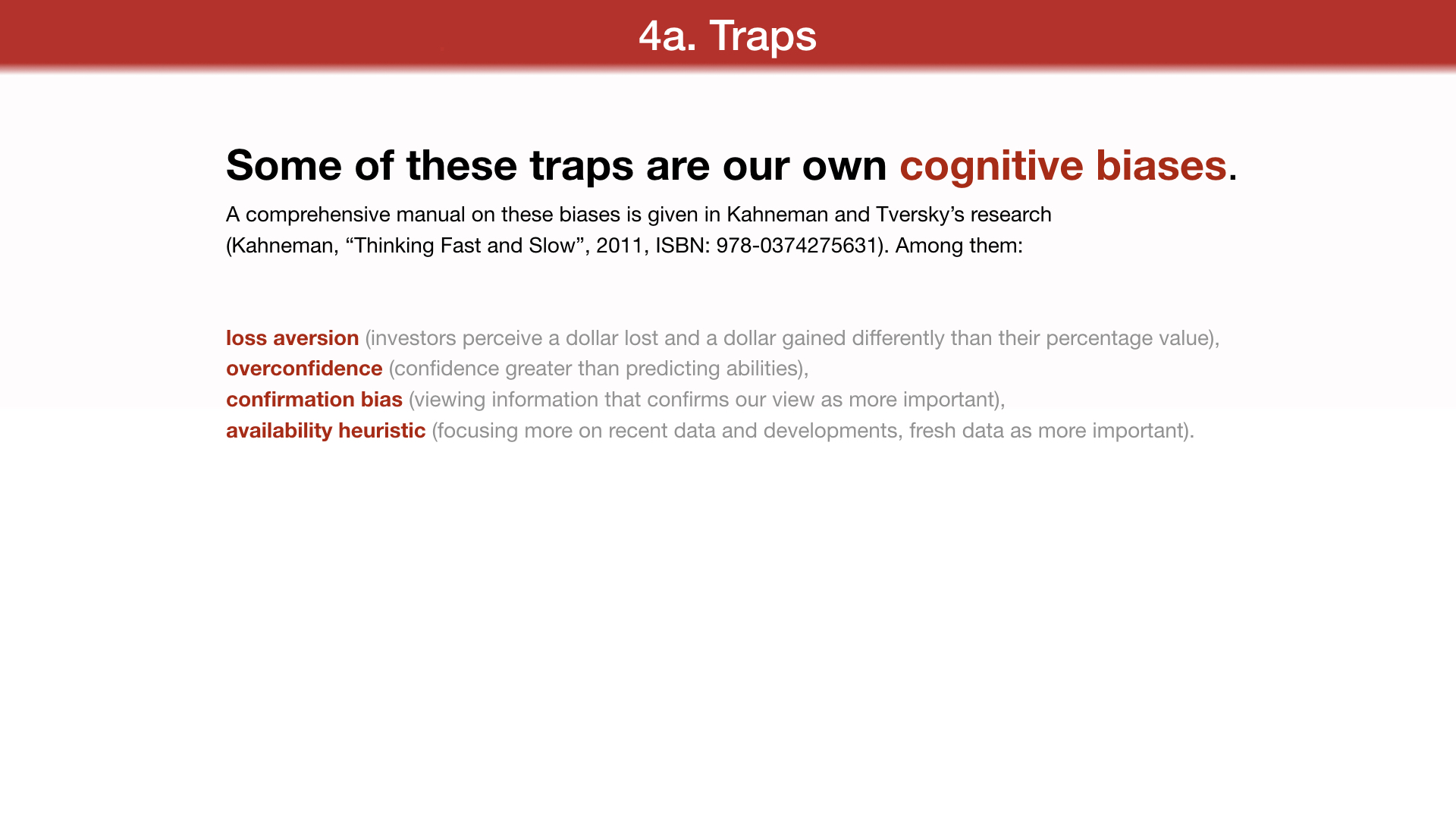 Some of these traps are our own cognitive biases. A comprehensive manual on these biases is given in Kahneman and Tversky's research